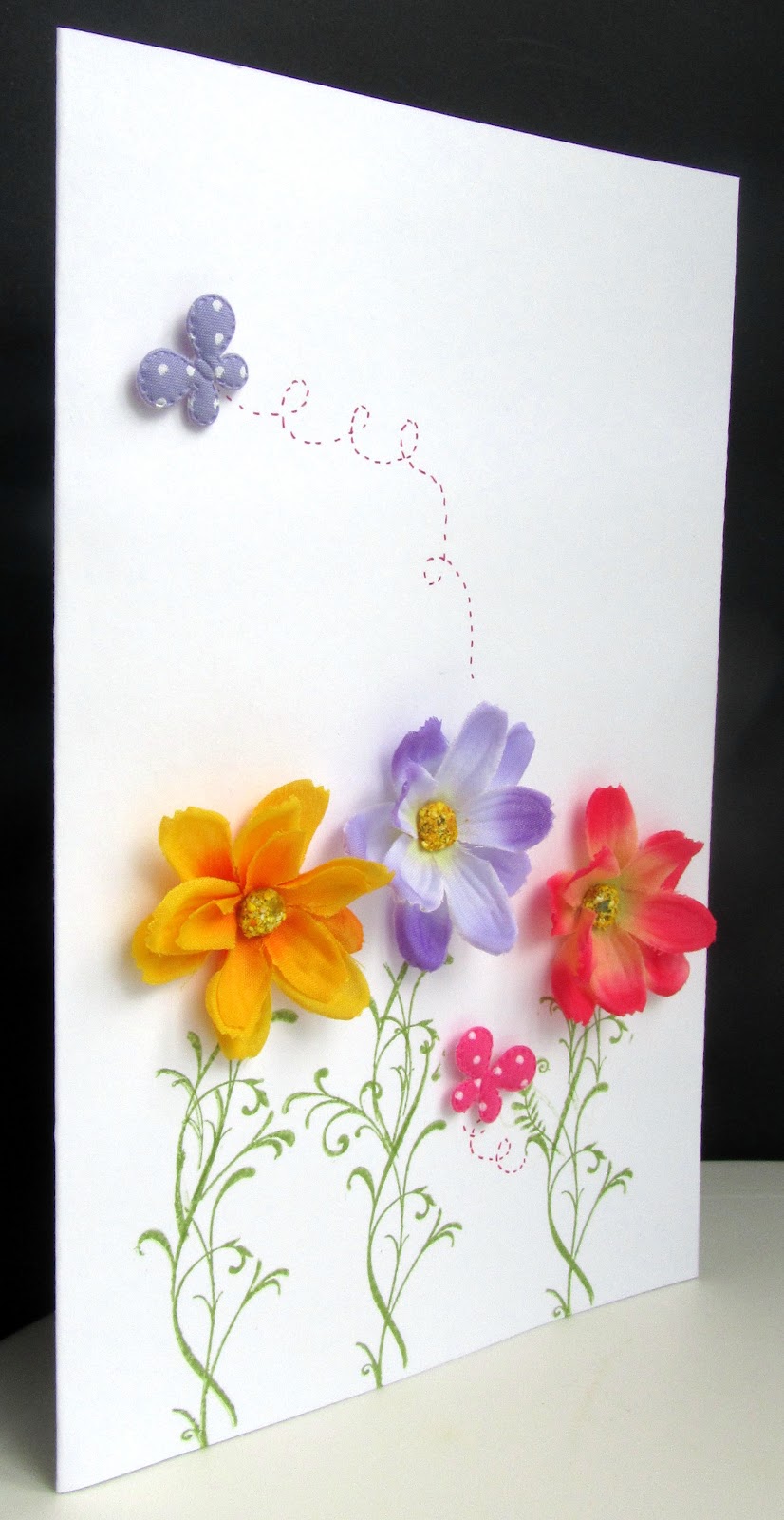 ResponderEliminarSuch a very pretty card! I love those flowers and sweet little butterfly at top of card! The stems for the flowers are very delicate and pretty too...take care!